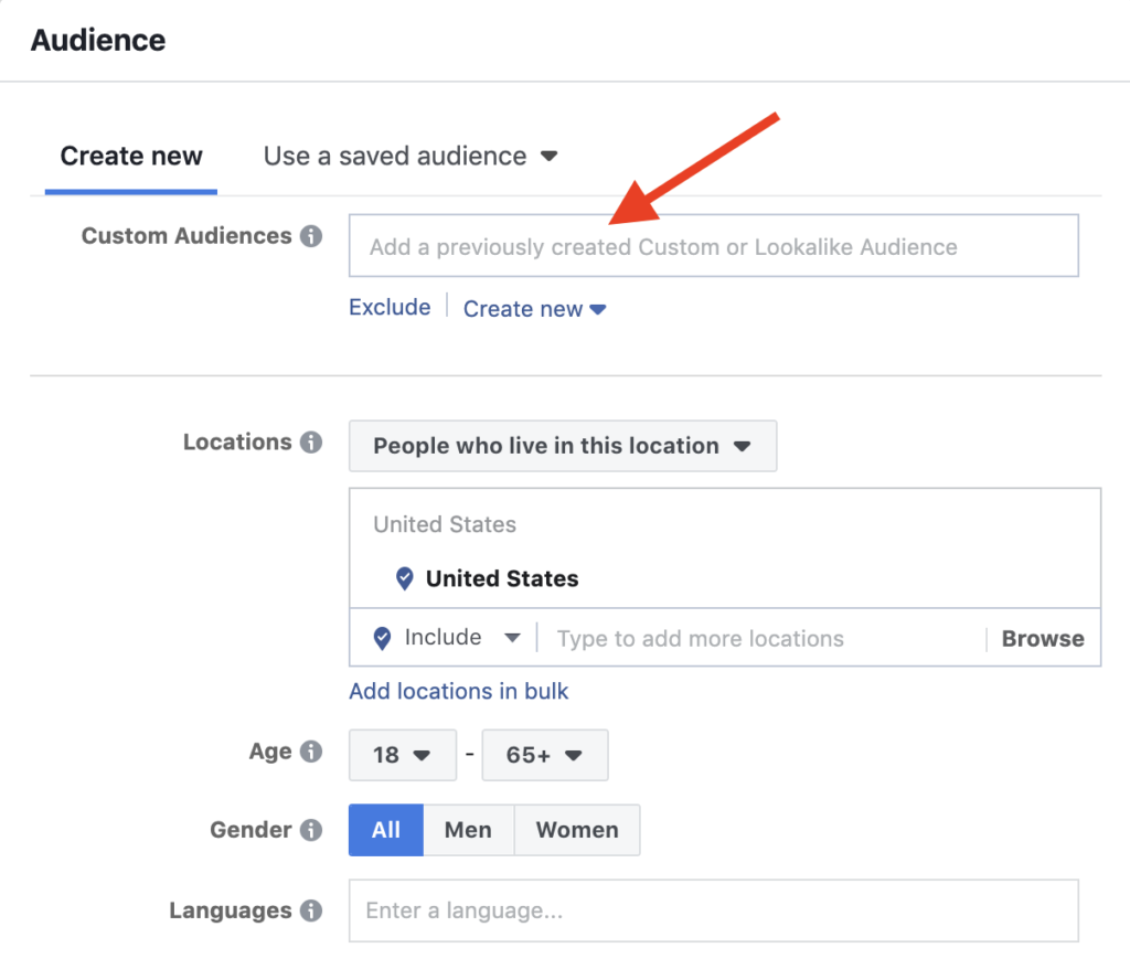 - Customer file custom audience: Upload a list of your existing customers’ email addresses or phone numbers to target them directly on Facebook.