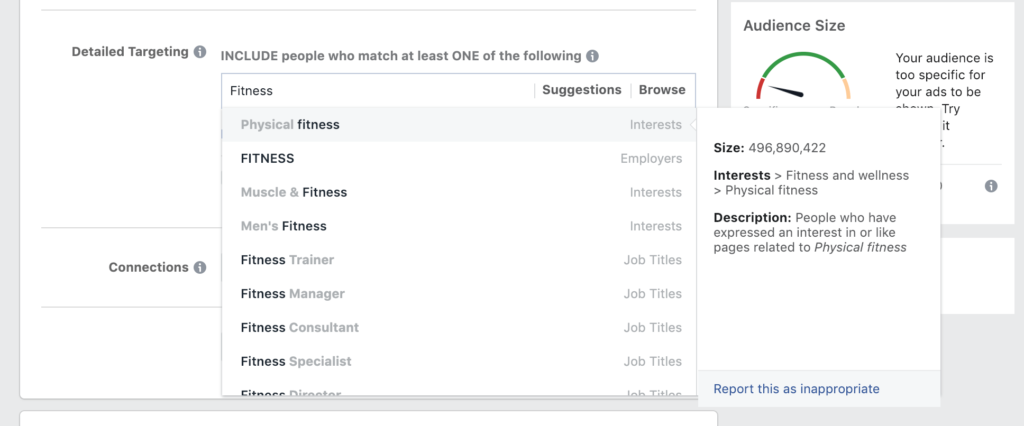 - Narrow down your audience: Avoid targeting broad interests that may have a large audience but lack specificity. Instead, focus on niche interests that align with your product or service.